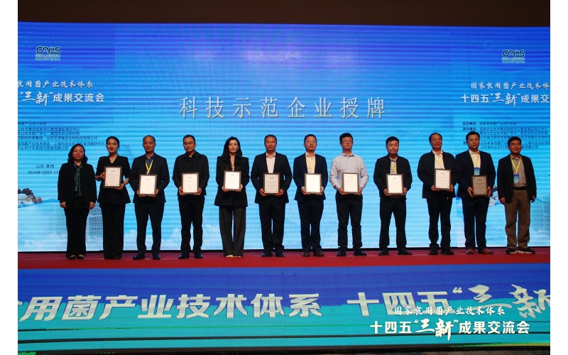 2024年10月10日,國(guó)家食用菌產(chǎn)業(yè)技術(shù)體系十四五“三新”成果交流會(huì)在山東省青島市萊西市舉行,國(guó)內(nèi)食用菌行業(yè)的領(lǐng)軍人物、專家學(xué)者、政府代表以及企業(yè)界代表共300余人參會(huì),共同探討食用菌產(chǎn)業(yè)新未來(lái)。開(kāi)幕式上,江蘇安惠生物科技有限公司等30家企業(yè)獲得“國(guó)家食用菌產(chǎn)業(yè)技術(shù)體系示范企業(yè)”榮譽(yù)稱號(hào)。