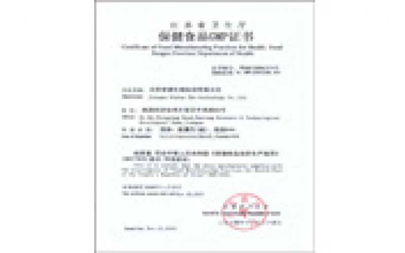 2004年11月26日,安惠公司生產(chǎn)車間通過保健食品GMP認(rèn)證。